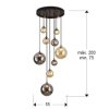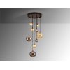 • Esta colección Dark está formada por diversos colgantes y plafones en acabados ambar y gris smoke espejado.