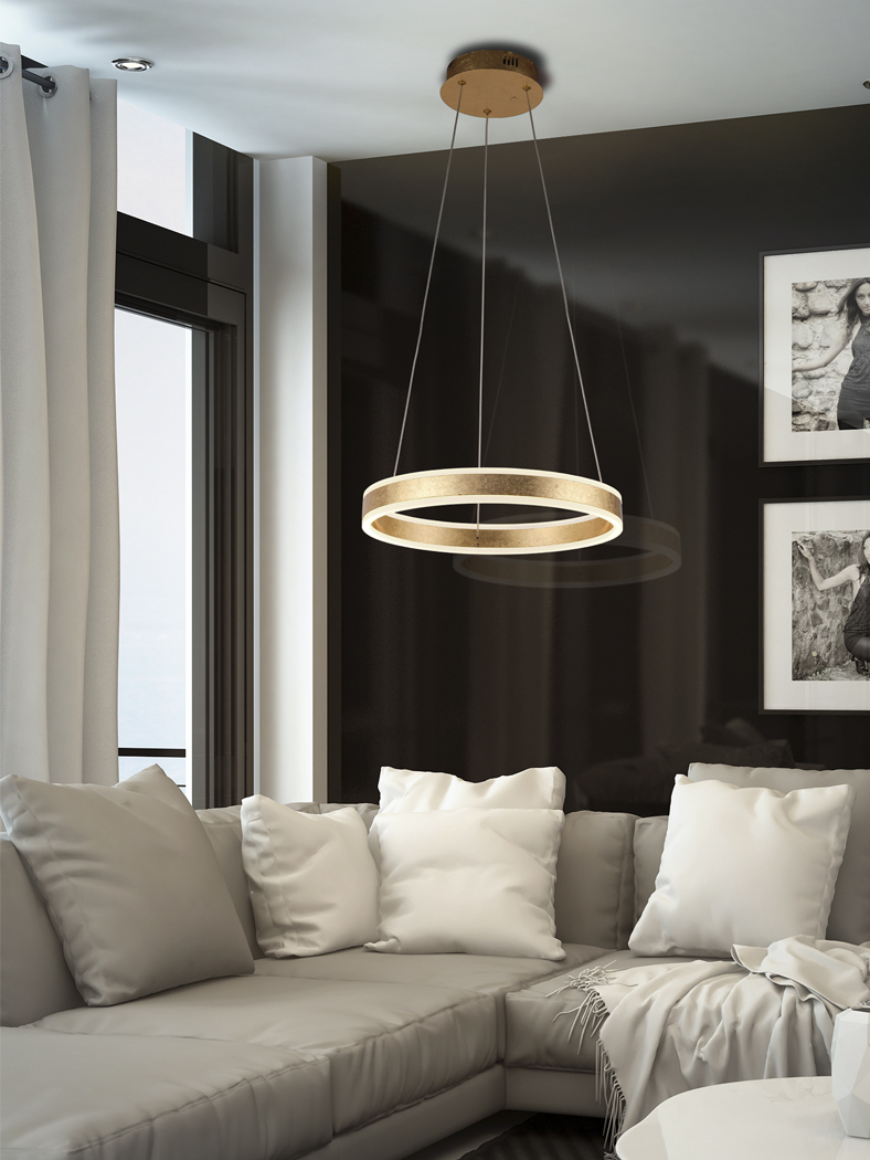 • Cuerpo de metal y aluminio acabado pan de oro. difusor de acrílico opal