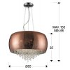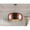 • Realizada en metal acabado cromo. Tulipa de cristal soplado en color cobre espejado. Decoración efecto estrellado. Interior con tiras de cristal facetado.