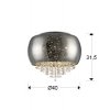 • Realizado en metal acabado cromo. Tulipa de cristal soplado en color plata espejado. Decoración efecto estrellado. Interior con tiras de cristal facetado.