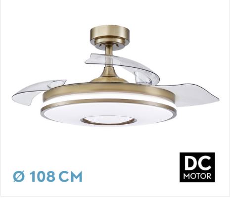 • Cuerpo del ventilador de metal, acabado en Cuero.