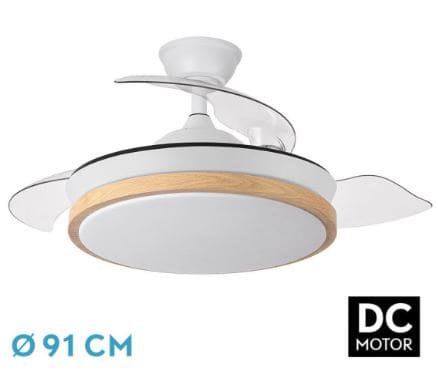 • Cuerpo del ventilador de metal, acabado en Blanco/Haya.